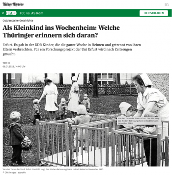 Sie war sechs Wochen alt, als sie zum ersten Mal in der Betriebswochenkrippe der Karl-Marx-Universität Leipzig abgegeben wird. Ihre Kindheit ist geprägt von Aufenthalten in Wochenkrippen und Kinderheim, Leistungssport, Ausreise-Anträgen und familiären Verstrickungen mit der Staatssicherheit.
