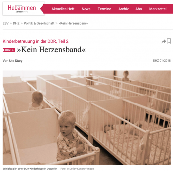 "Krippe und Kita als Wochenheim" von Ute Stary in Hebammenzeitschrift (12/2017)